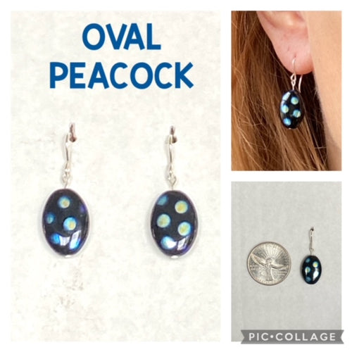 Oval Peacock Beaded Earrings