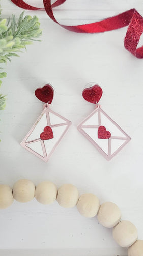 • Valentine Love Note Envelope Dangle Earrings